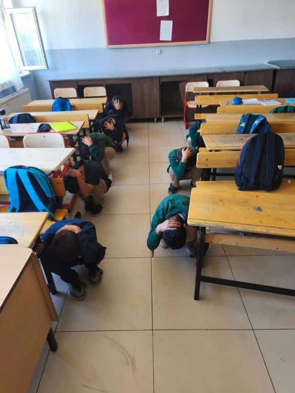 Afet Öncesinden Sonrasına Eğitim Projesi kapsamında deprem tatbikatı...